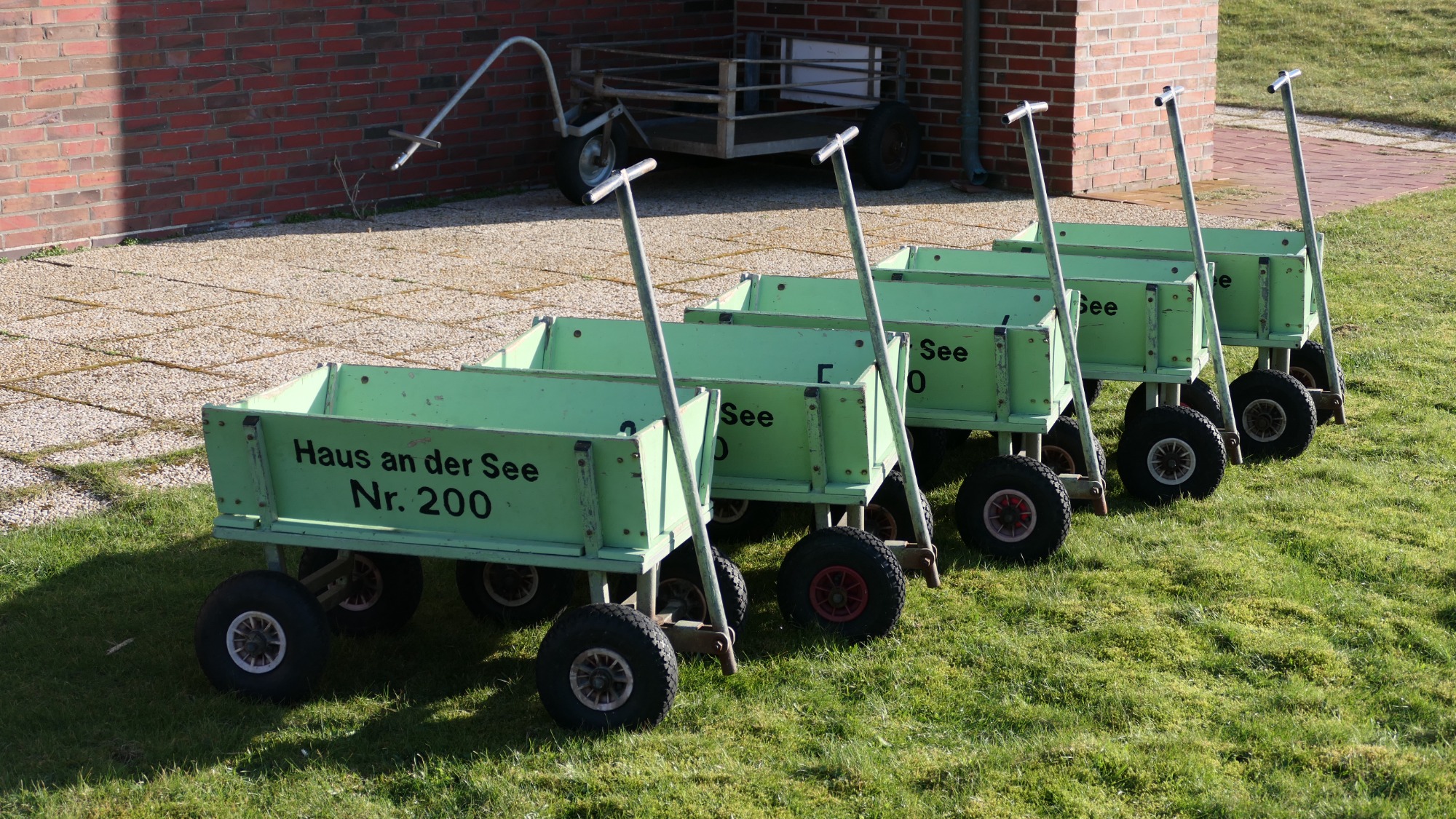 Um einen reibungslosen Strandtransport zu gewährleisten stehen für unsere kleinsten Gäste Bollerwagen zur Verfügung.